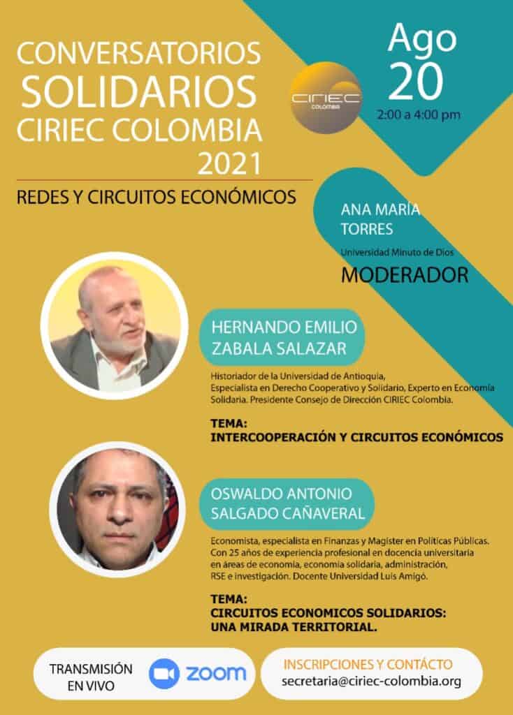 ¡Bienvenidos a una nueva ronda de Conversatorios Solidarios CIRIEC Colombia! En nuestra edición de 2021 comenzamos con los académicos Hernando Zabala y Oswaldo Salgado. El tema a tratar en esta sesión son «Redes y Circuitos Económicos».