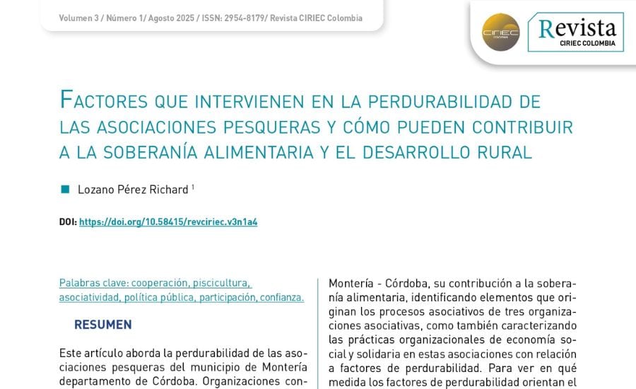 El investigador Richard Lozano examina las causas que determinan la longevidad de las asociaciones pesqueras en Montería (Córdoba), destacando su papel en la sostenibilidad del desarrollo rural y la soberanía alimentaria. Se examinan aspectos como la organización interna, el acceso a recursos y el entorno institucional, resaltando que estas asociaciones permiten fortalecer la producción local y garantizar sistemas alimentarios más autónomos y sostenibles en las comunidades 🌍.